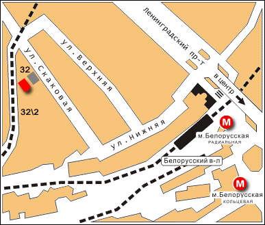 Метро "Белорусская"-радиальная, перейти по мосту, повернуть в первый поворот налево, далее руководствоваться схемой (5-7 мин. от метро).